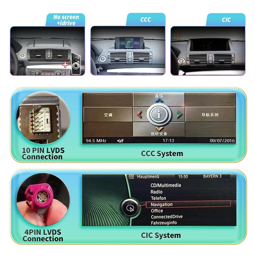 • Vhodné pro systém: CIC, CCC, bez továrního iDrive