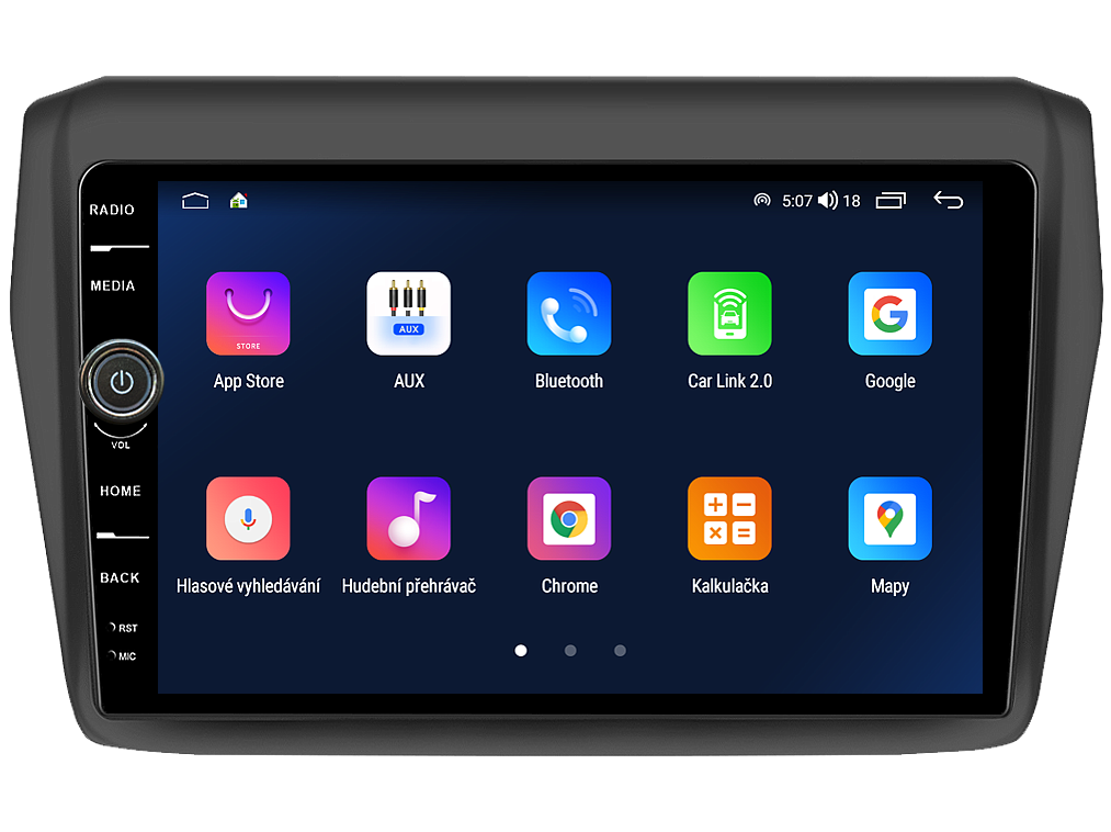 2DIN autorádio Everest EVE66 pro Suzuki Swift III (Gen 5) nastavuje nové standardy ve světě multimediálních technologií. Na první pohled zaujme svou 9 palcovou QLED obrazovkou s neuvěřitelným rozlišením 1280 x 800. Lze na ní sledovat video i prohlížet fotografie s podporou Android aplikacemi. O špičkový výkon a plynulý běh aplikací se stará stabilní software8-jádrovým procesorem ve spolupráci se 6 GB RAM. Náročný posluchač jistě ocení funkci DSP neboli digitální signálový procesor, který násobně zvyšuje kvalitu reprodukce. Za pomocí 4G modulu se z Vašeho autorádia stane smartphone, ze kterého můžete hravě odesílat SMS zprávy, využívat online GPS navigaci s aktuální dopravní situací či využívat další cenné funkce. Váš mobilní telefon již zůstane navždy v kapse díky bezdrátové funkci CarPlay a Android Auto. Díky operačnímu systému Android 14 budete mít ve svém automobilu kompletní multimediální centrum přeplněné funkcemi a aplikacemi. Pohled z parkovací kamery Vám umožní bezpečné a ničím nerušené couvání. Autorádio nabízí možnost výběru z různých jazyků, které obsahují přeloženou základní část systému do českého jazyka.