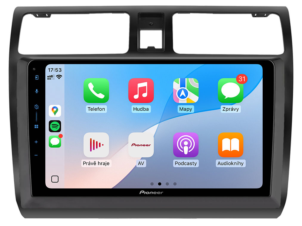 Proměňte každou jízdu automobilem v jedinečný zážitek s autorádiem Pioneer SPH-PF97BT pro Suzuki Swift I (Gen 3). Tento moderní multimediální systém se pyšní velkým 9" dotykovým displejem s intuitivním ovládáním, které vám poskytne snadný přístup ke všem funkcím. Apple CarPlay a Android Auto zajišťují bezproblémové propojení s vaším chytrým telefonem, takže můžete pohodlně používat navigaci, přehrávat hudbu nebo vyřizovat hovory prostřednictvím Bluetooth Handsfree. Díky pokročilému DSP (Digital Signal Processor) ekvalizéru si užijete dokonalý zvukový zážitek, ať už posloucháte oblíbenou hudbu nebo sledujete video. Bezdrátové připojení umožňuje rychlé streamování a přístup k online službám. Pokud často parkujete ve stísněných prostorech, oceníte možnost připojení couvací kamery, která vám usnadní manévrování. Elegantní design a široká kompatibilita dělají z Pioneer ideální volbu pro každého, kdo hledá špičkové autorádio s nejmodernějšími technologiemi.
