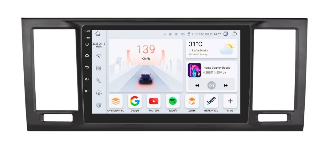 Displej autorádia zaujme velkou úhlopříčkou 9 palce a HD rozlišením 1280 × 720 px, díky kterému je obraz ostrý, přehledný a plný detailů. Dotyková plocha reaguje plynule a přesně, takže ovládání funkcí, aplikací i nastavení je intuitivní a pohodlné i během jízdy. Velký formát displeje navíc zajišťuje výbornou čitelnost navigace, multimédií i dalších informací na první pohled.