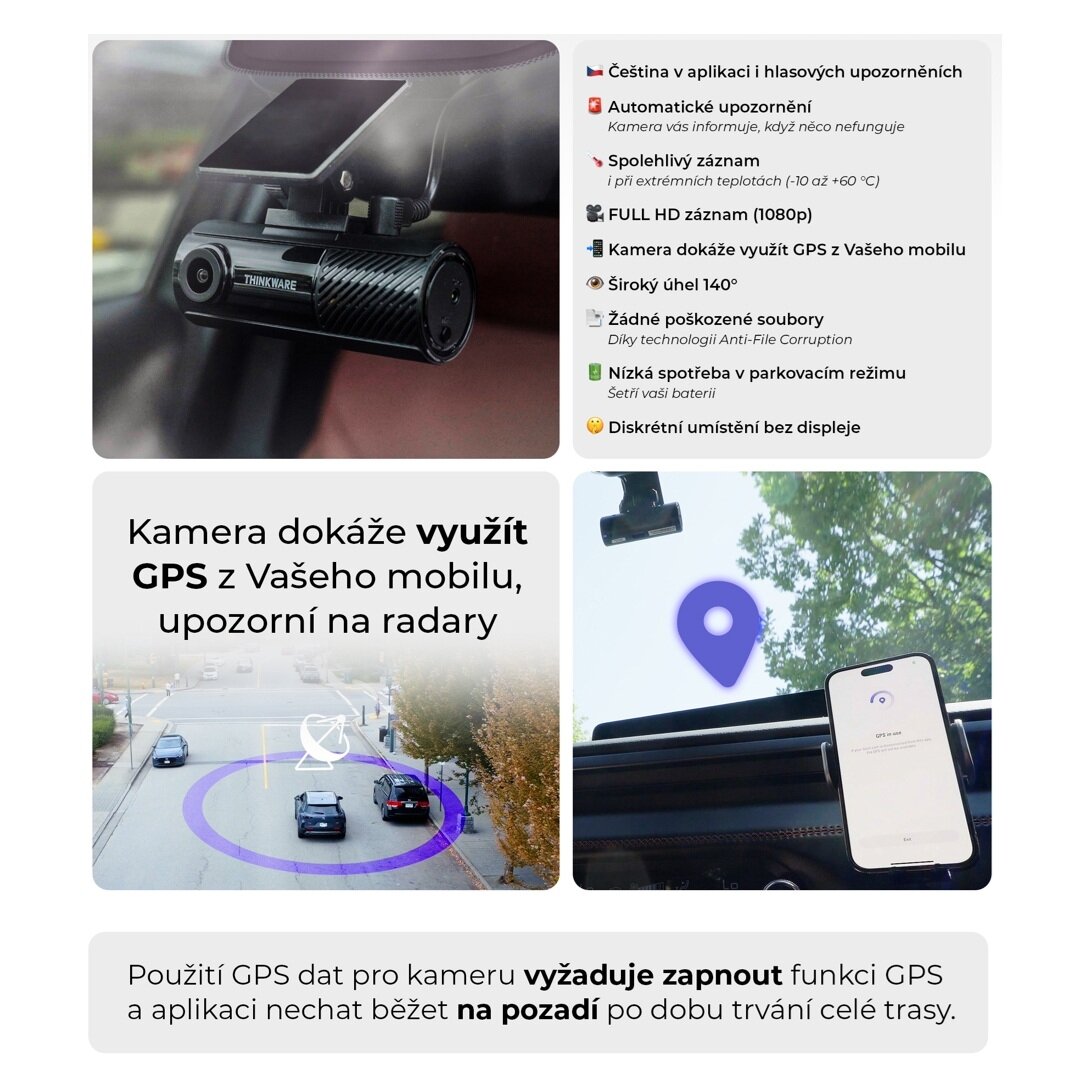 - Wi-Fi pro spojení s mobilní aplikací THINKWARE Dash Cam Link