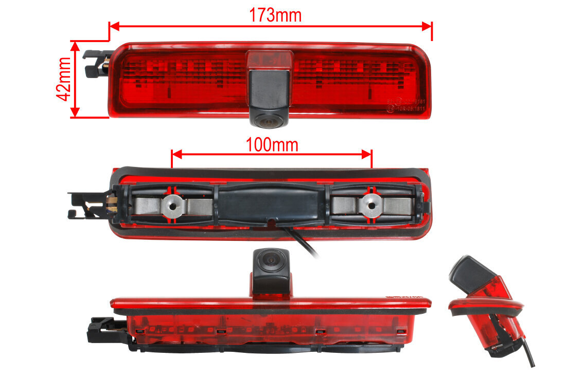 Kamera je integrována ve třetím brzdovém světle umístěném v levých křídlových dveřích, které nahrazuje originální brzdové světlo. Světelná signalizace je zajištěna integrovanými LED diodami. Připojovací konektor je schodný s originálním konektorem.