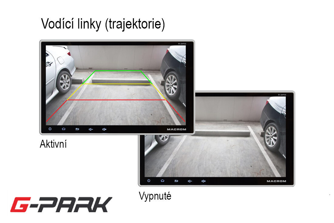 - zobrazuje pomocné trajektorie (vodicí linek) na monitoru pro orientaci při parkování (volitelná funkce)