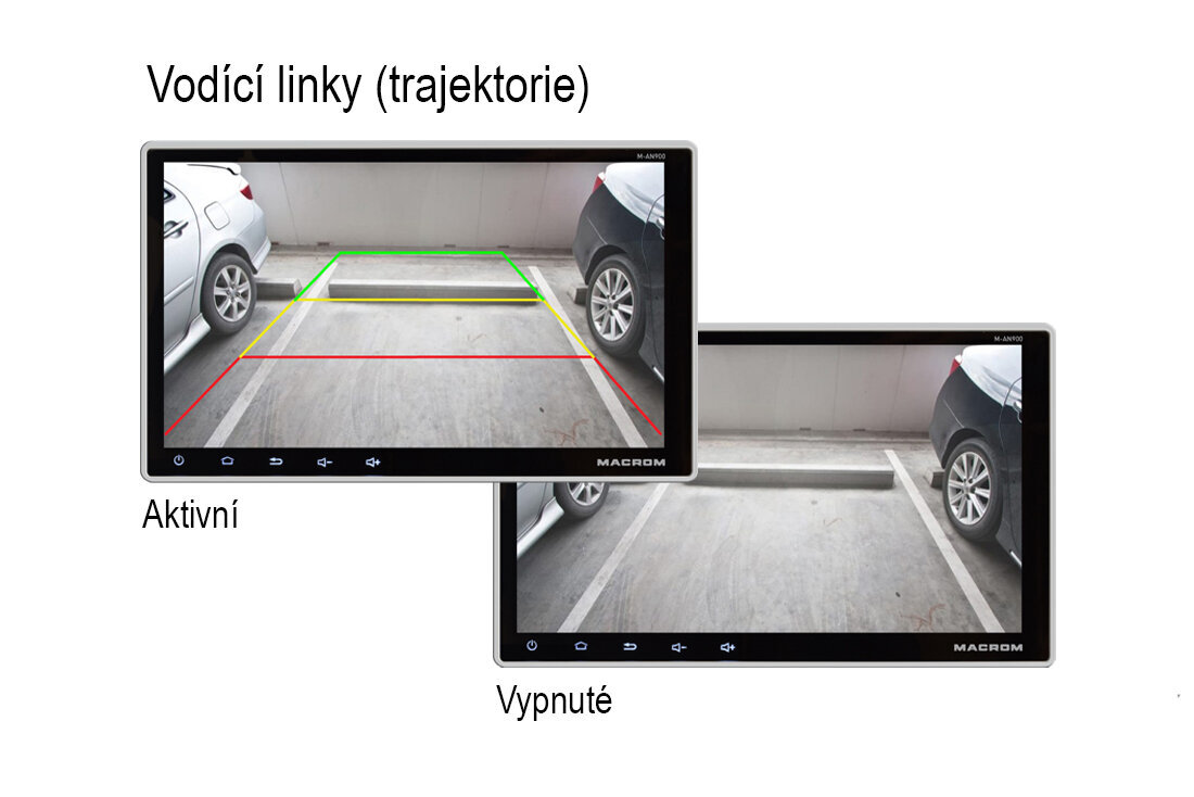 - zobrazuje pomocné trajektorie (vodicí linek) na monitoru pro orientaci při parkování