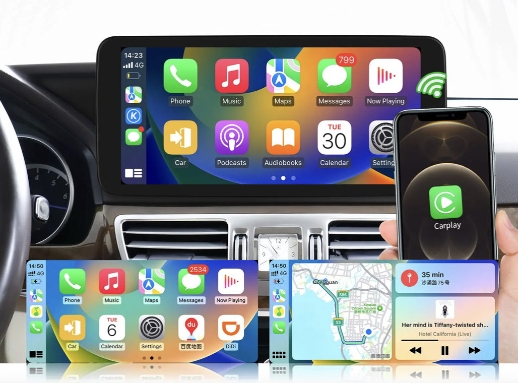 Moderní 10,25" autorádio s dotykovým displejem a vysokým rozlišením 1920 x 720 px je navrženo speciálně pro vozidla Mercedes-Benz. Běží na systému Android 13 a nabízí rychlé a plynulé uživatelské prostředí. Díky Bluetooth 5.0 (dvoukanálový), Wi-Fi připojení a slotu pro SIM kartu budete neustále online. Rádio zachovává původní jednotku a infotainment systému, takže nepřijdete o žádné tovární funkce. Plně podporuje ovládání z volantu, parkovací senzory, originální parkovací kameru i ostatní nastavení vozidla. Samozřejmostí je bezdrátová podpora Apple CarPlay a Android Auto pro maximální komfort během jízdy.