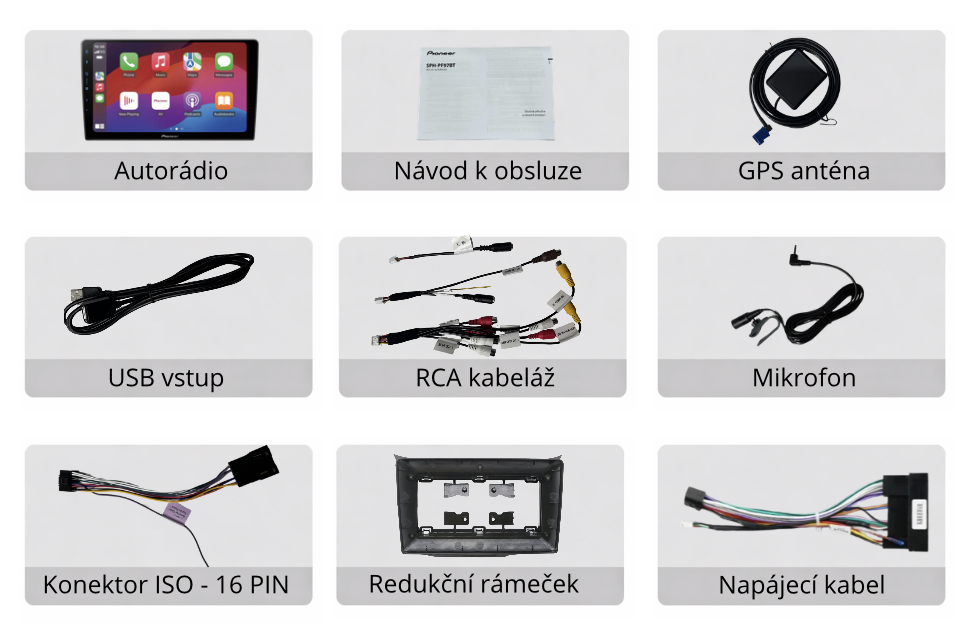 Autorádio Pioneer SPH-PF97BT s velkým 9" dotykovým displejem nabízí moderní výbavu včetně bezdrátového Apple CarPlay a Android Auto, Bluetooth handsfree, WebLink 3.0 a kvalitního DSP zvukového procesoru. Díky podpoře couvací kamery, jednoduchému ovládání a konstrukci PERFECT FIT, která umožňuje instalaci do různých typů vozidel, je ideální volbou pro každého, kdo chce komfort, bezpečnost a špičkový zvuk v jednom zařízení.