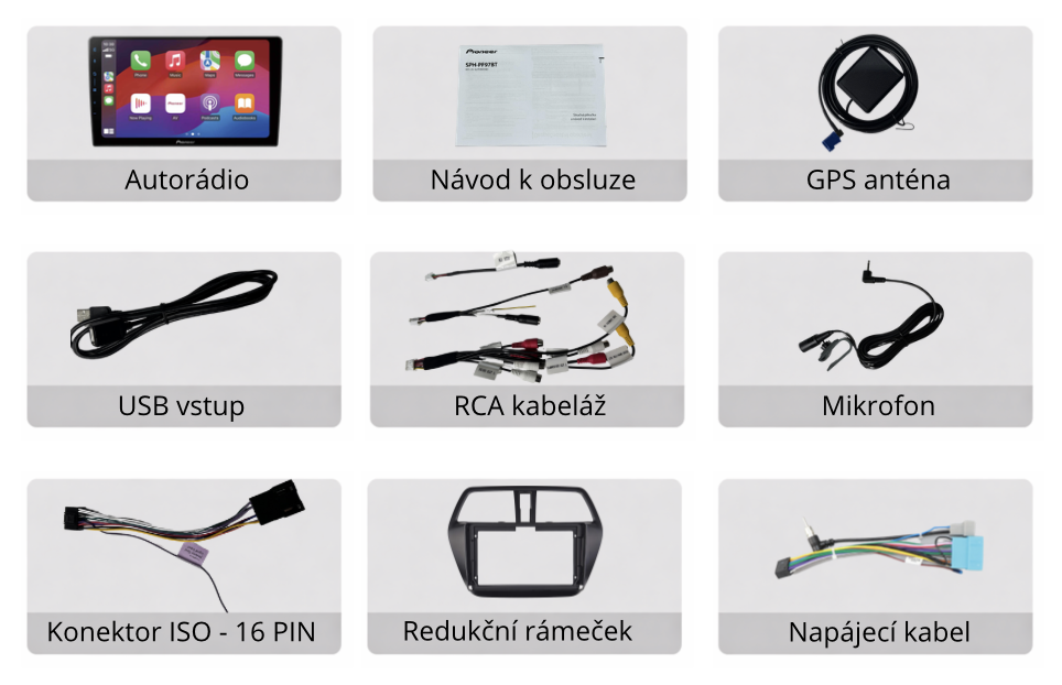 Autorádio Pioneer SPH-PF97BT s velkým 9" dotykovým displejem nabízí moderní výbavu včetně bezdrátového Apple CarPlay a Android Auto, Bluetooth handsfree, WebLink 3.0 a kvalitního DSP zvukového procesoru. Díky podpoře couvací kamery, jednoduchému ovládání a konstrukci PERFECT FIT, která umožňuje instalaci do různých typů vozidel, je ideální volbou pro každého, kdo chce komfort, bezpečnost a špičkový zvuk v jednom zařízení.