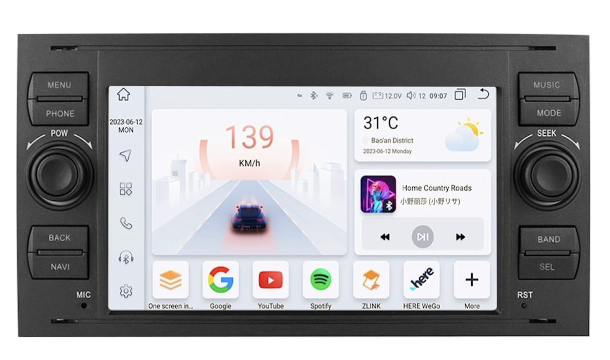 Rychlý systém Android 13 nabízí bezdrátové zrcadlení pro snadné propojení s Android i iPhone. Díky Apple CarPlay a Android Auto máte rychlý přístup k funkcím telefonu. Bluetooth umožňuje příjem hovorů a přehrávání hudby přímo z telefonu. Rádio lze připojit k Wi-Fi nebo vložit SIM kartu pro připojení k internetu. Integrovaná navigace IGO Primo funguje bez internetu a rádio podporuje tlačítka na volantu i parkovací senzory. K dispozici je také možnost připojení parkovací kamery (CINCH). Rádio se automaticky vypne po vytažení klíče, aby nevybíjelo baterii.