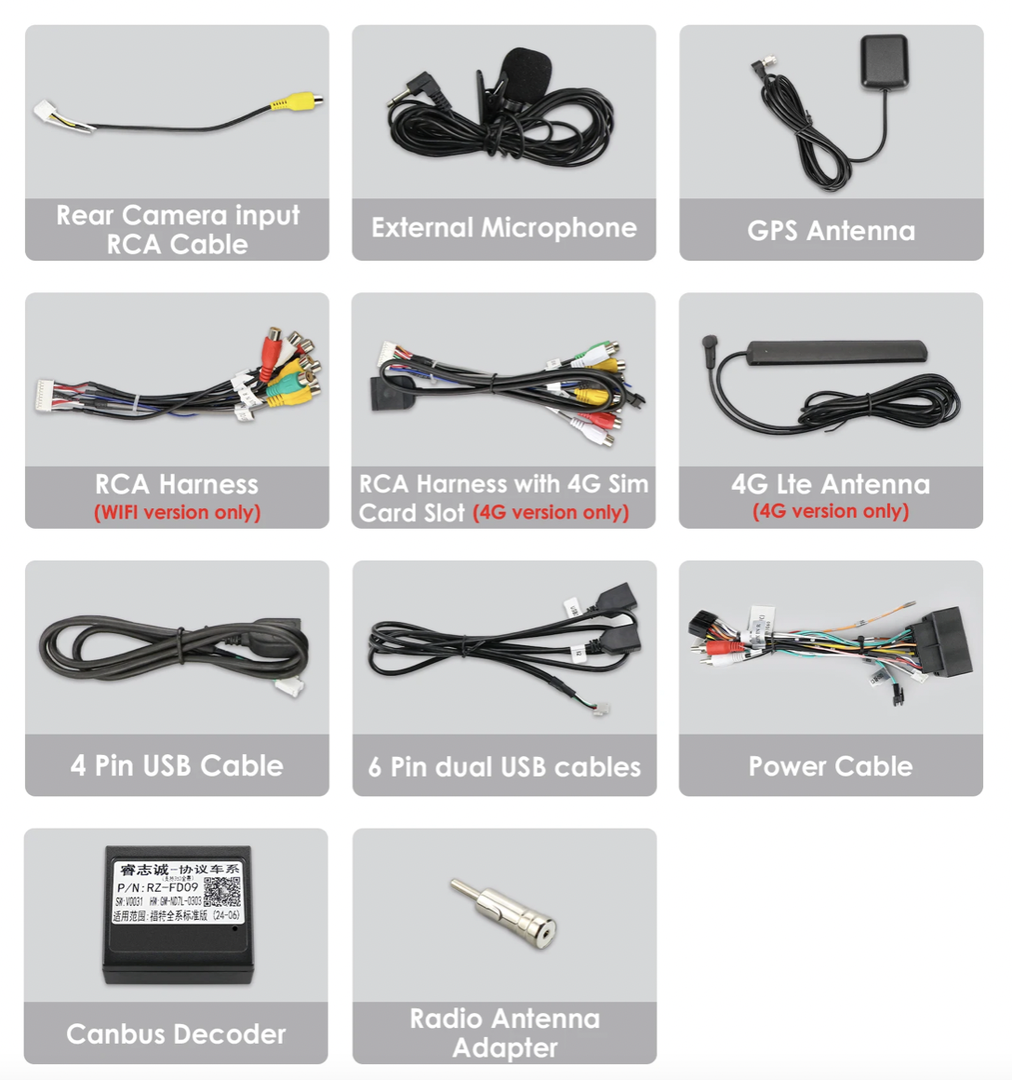 - RCA kabeláž včetně slotu pro SIM kartu (Slot pro SIM pouze u verzí S)