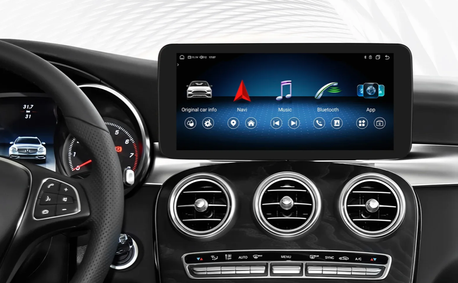 Moderní 10,25" autorádio s dotykovým displejem a vysokým rozlišením 1920 x 720 px je navrženo speciálně pro vozidla Mercedes-Benz. Běží na systému Android 13 a nabízí rychlé a plynulé uživatelské prostředí. Díky Bluetooth 5.0(dvoukanálový), Wi-Fi připojení a slotu pro SIM kartu budete neustále online. Rádio zachovává původní jednotku a infotainment systému, takže nepřijdete o žádné tovární funkce. Plně podporuje ovládání z volantu, parkovací senzory, originální parkovací kameru i ostatní nastavení vozidla. Samozřejmostí je bezdrátová podpora Apple CarPlay a Android Auto pro maximální komfort během jízdy.