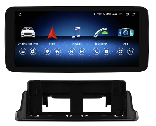 Moderní 10,25" autorádio s dotykovým displejem a vysokým rozlišením 1920 x 720 px je navrženo speciálně pro vozidla Mercedes-Benz. Běží na systému Android 13 a nabízí rychlé a plynulé uživatelské prostředí. Díky Bluetooth 5.0(dvoukanálový), Wi-Fi připojení a slotu pro SIM kartu budete neustále online. Rádio zachovává původní jednotku a infotainment systému, takže nepřijdete o žádné tovární funkce. Plně podporuje ovládání z volantu, parkovací senzory, originální parkovací kameru i ostatní nastavení vozidla. Samozřejmostí je bezdrátová podpora Apple CarPlay a Android Auto pro maximální komfort během jízdy.
