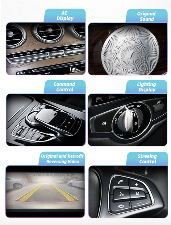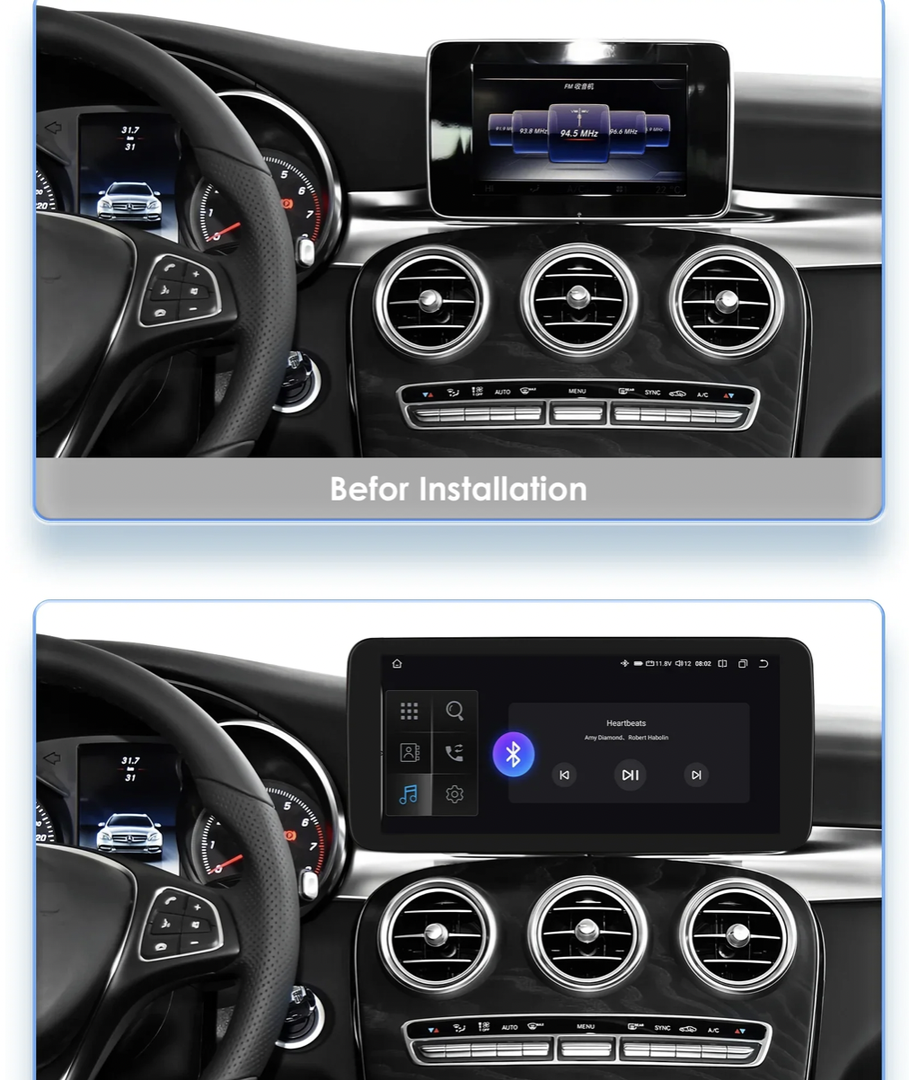 Moderní 10,25" autorádio s dotykovým displejem a vysokým rozlišením 1920 x 720 px je navrženo speciálně pro vozidla Mercedes-Benz. Běží na systému Android 13 a nabízí rychlé a plynulé uživatelské prostředí. Díky Bluetooth 5.0(dvoukanálový), Wi-Fi připojení a slotu pro SIM kartu budete neustále online. Rádio zachovává původní jednotku a infotainment systému, takže nepřijdete o žádné tovární funkce. Plně podporuje ovládání z volantu, parkovací senzory, originální parkovací kameru i ostatní nastavení vozidla. Samozřejmostí je bezdrátová podpora Apple CarPlay a Android Auto pro maximální komfort během jízdy.
