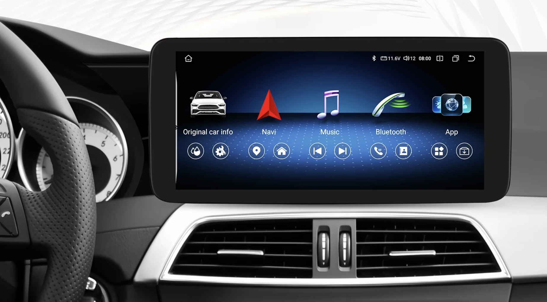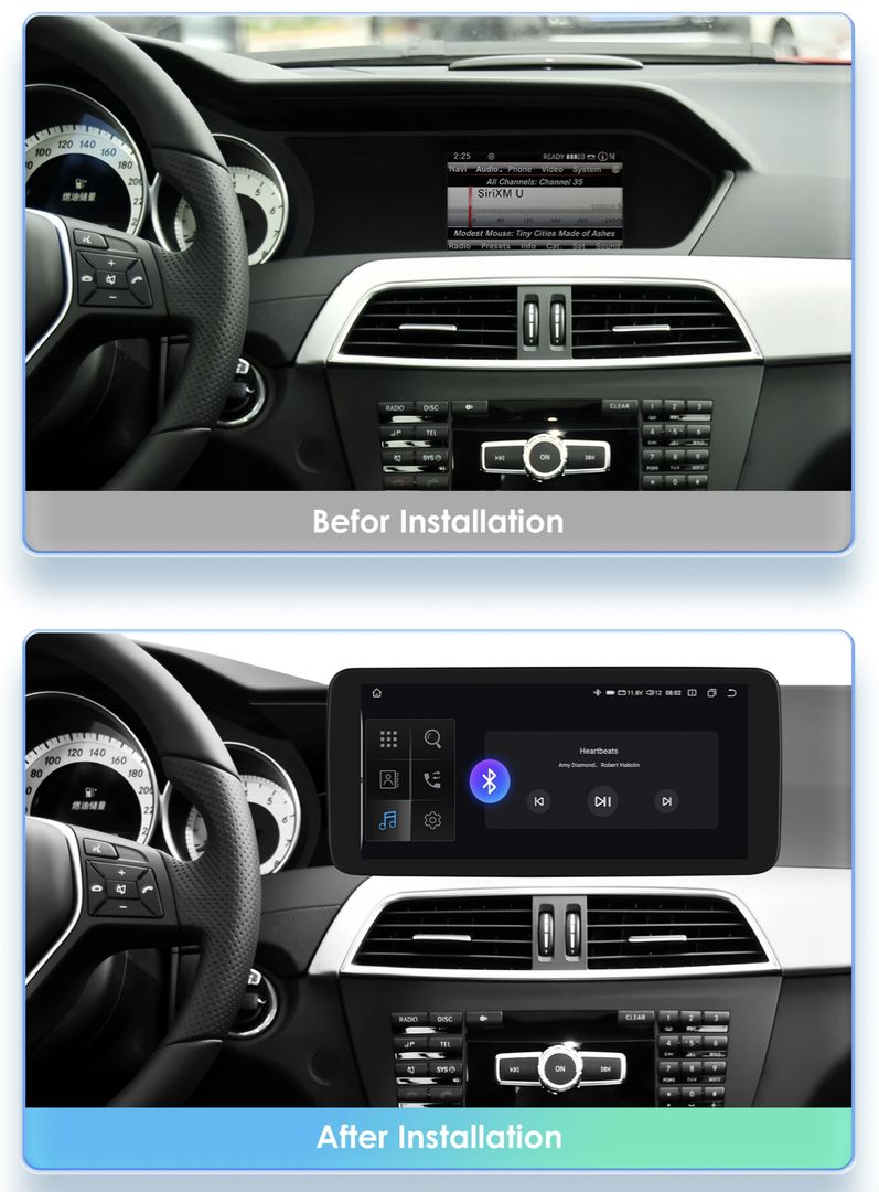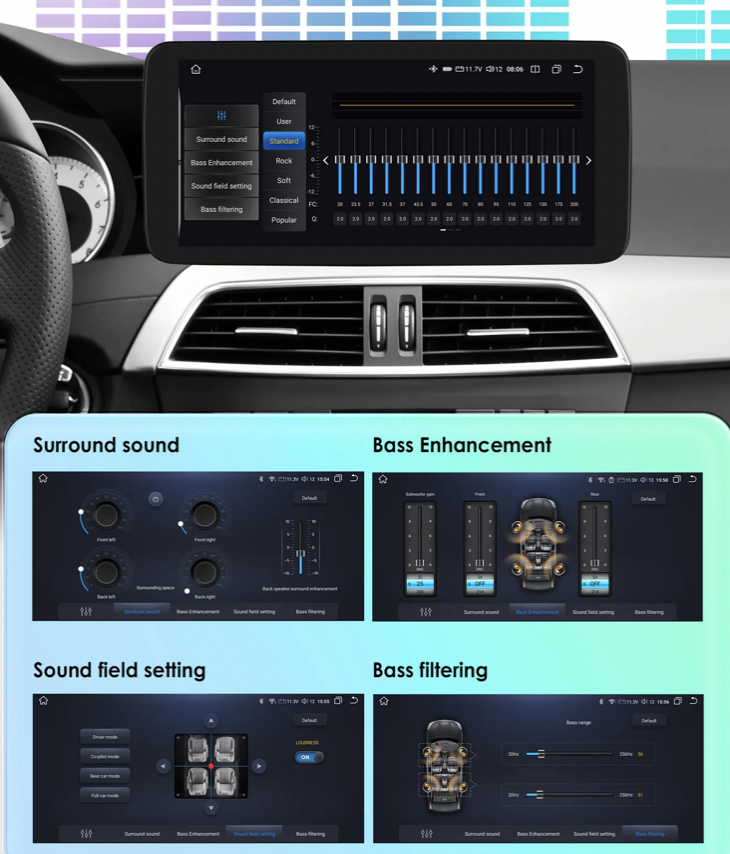 Moderní 10,25" autorádio s dotykovým displejem a vysokým rozlišením 1920 x 720 px je navrženo speciálně pro vozidla Mercedes-Benz. Běží na systému Android 13 a nabízí rychlé a plynulé uživatelské prostředí. Díky Bluetooth 5.0(dvoukanálový), Wi-Fi připojení a slotu pro SIM kartu budete neustále online. Rádio zachovává původní jednotku a infotainment systému, takže nepřijdete o žádné tovární funkce. Plně podporuje ovládání z volantu, parkovací senzory, originální parkovací kameru i ostatní nastavení vozidla. Samozřejmostí je bezdrátová podpora Apple CarPlay a Android Auto pro maximální komfort během jízdy.