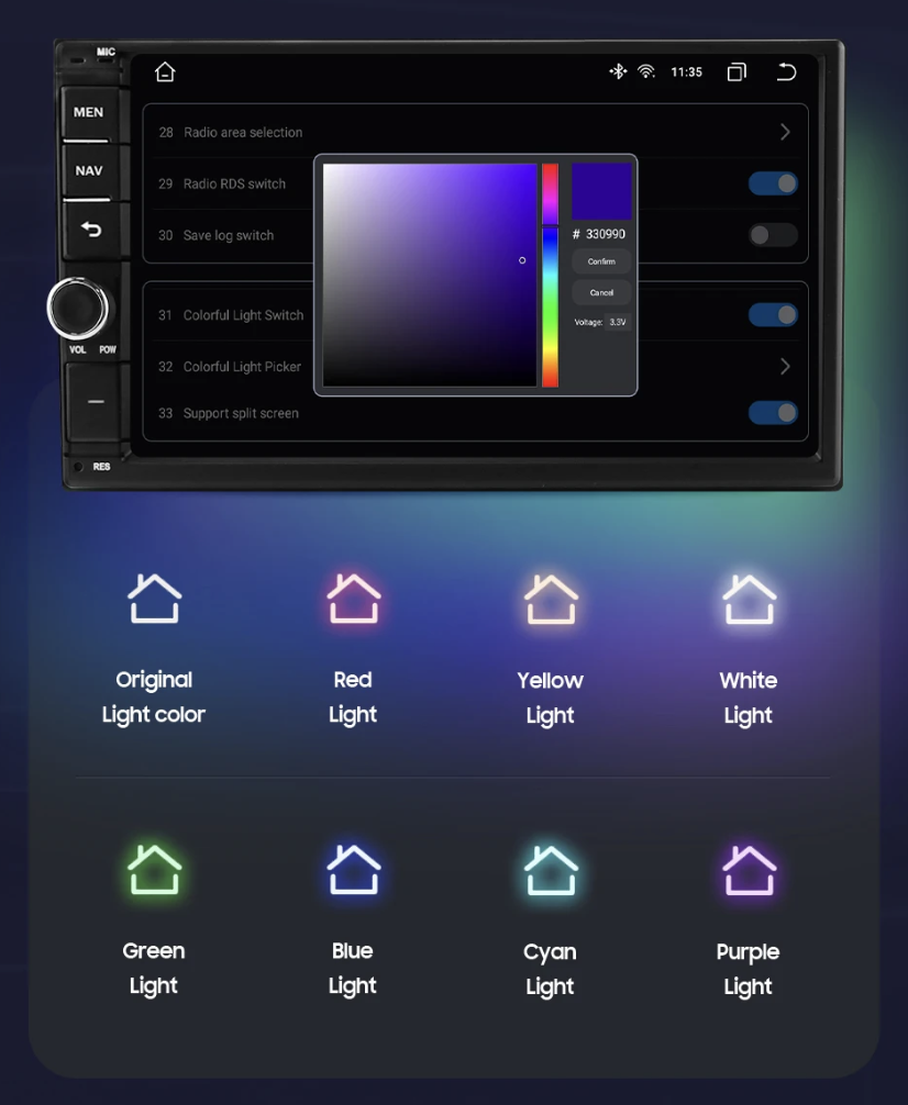 7" displej s rozlišením 1024x600 px zajišťuje jasné a živé zobrazení všech funkcí rádia. Dotyková technologie umožňuje rychlé a intuitivní ovládání, díky kterému budete mít všechny možnosti na dosah ruky.