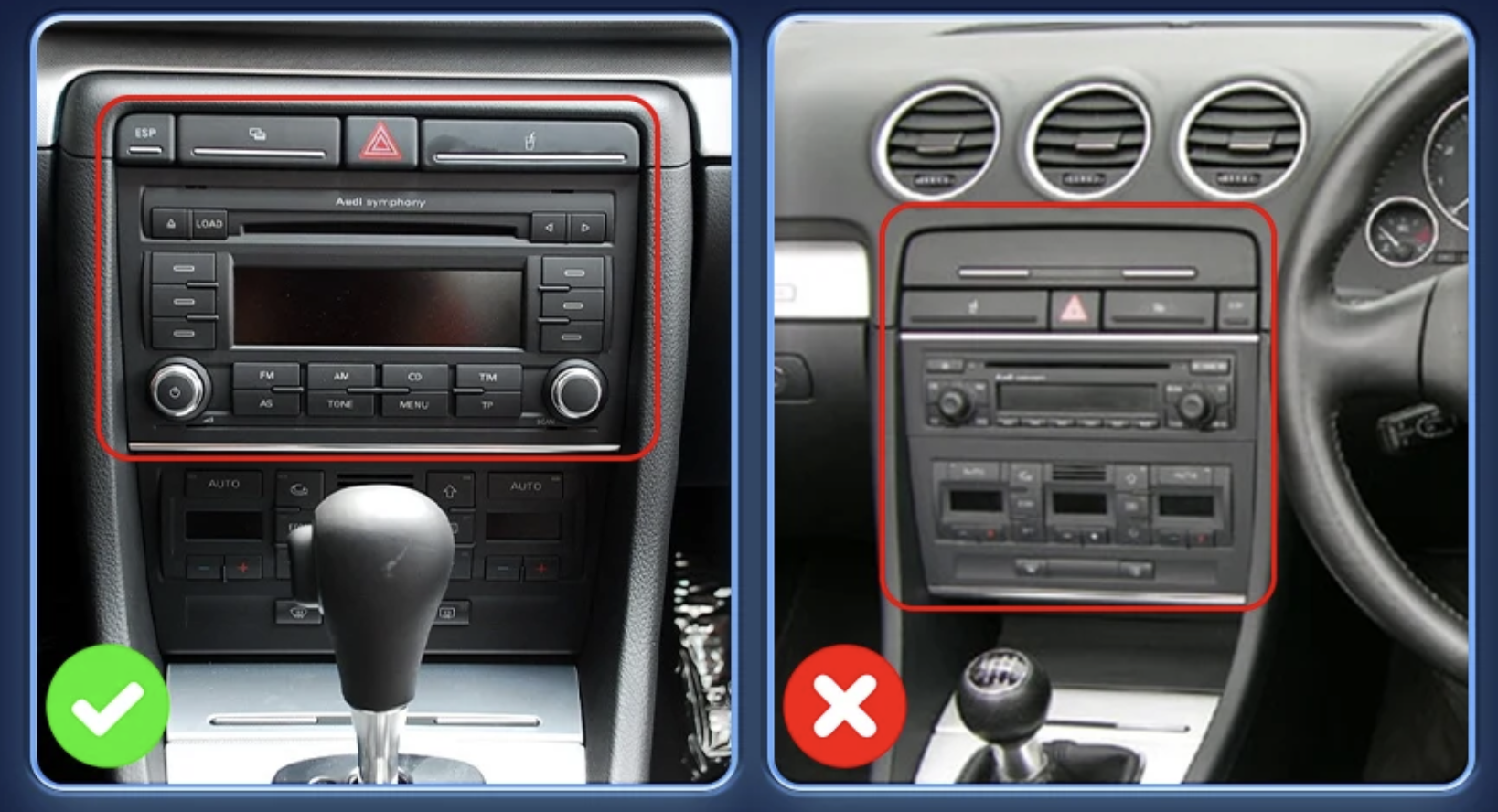 Autorádio nelze instalovat do vozidel s panelem na pravém obrázku.
