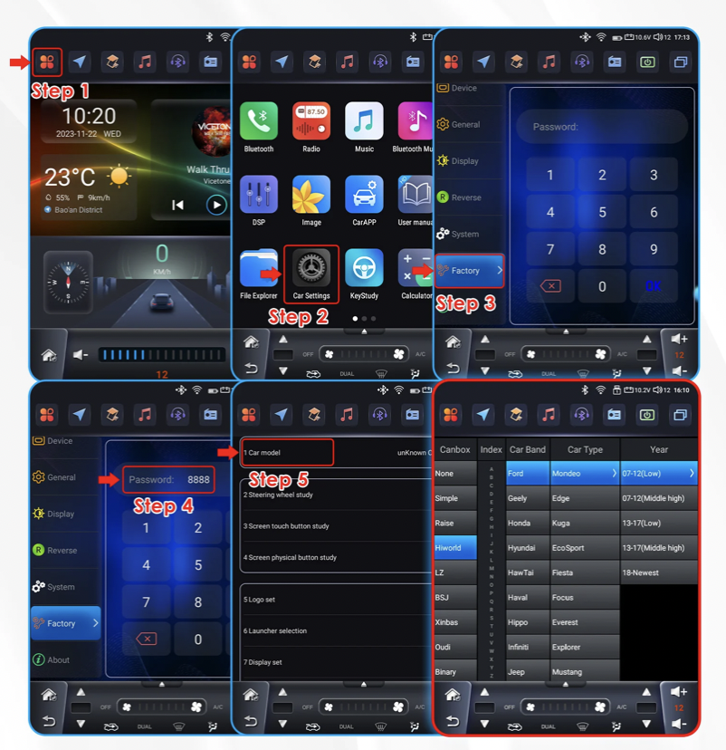 Pro komunikaci autorádia s vozidlem je nutné nastavit model vozidla podle obrázku.