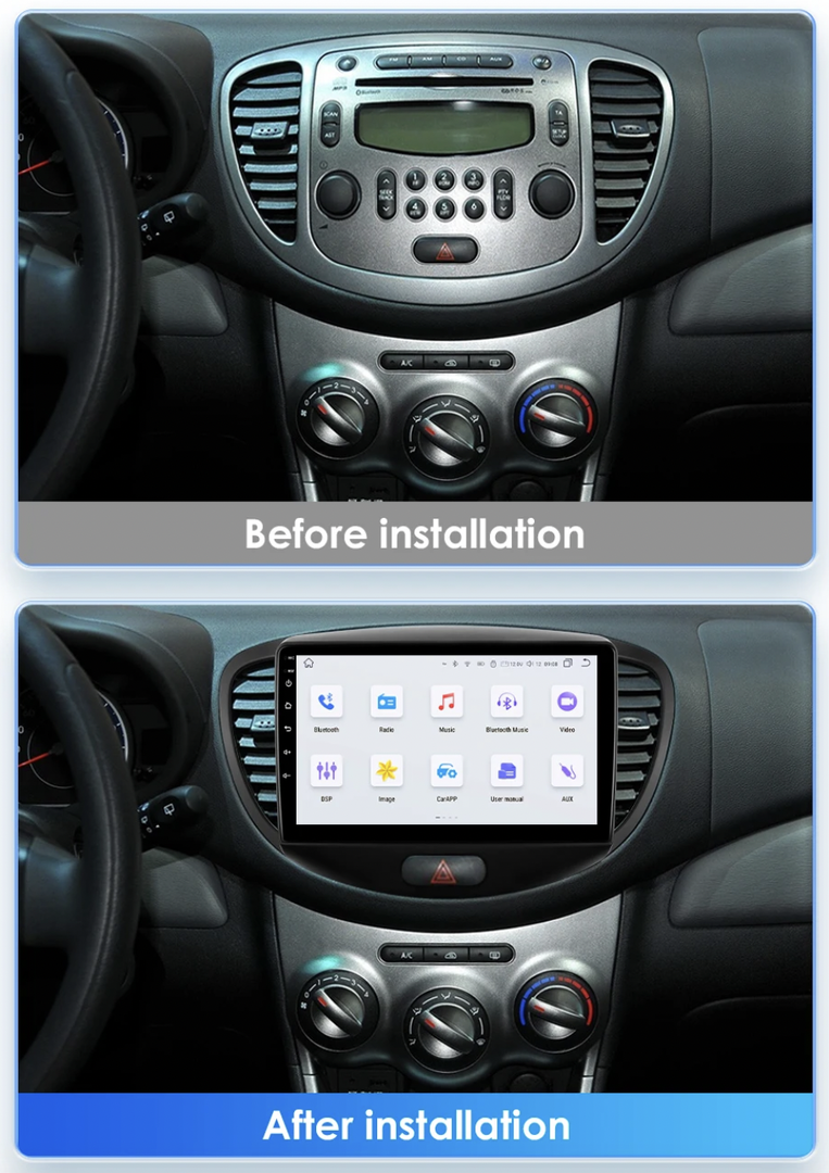 HIZPO KXI109001 Autorádio 9" Android pro Hyundai i10 Model: S9004 (4+32GB) CHR1077