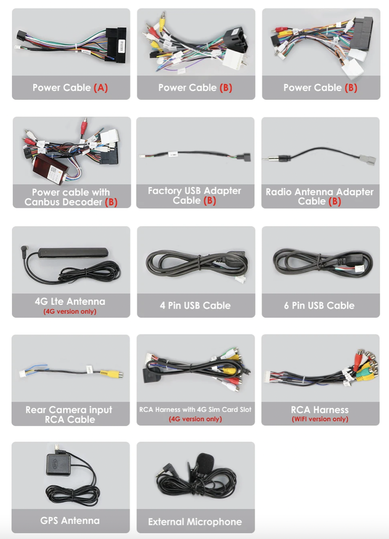 - Kabel pro připojení parkovací kamery,