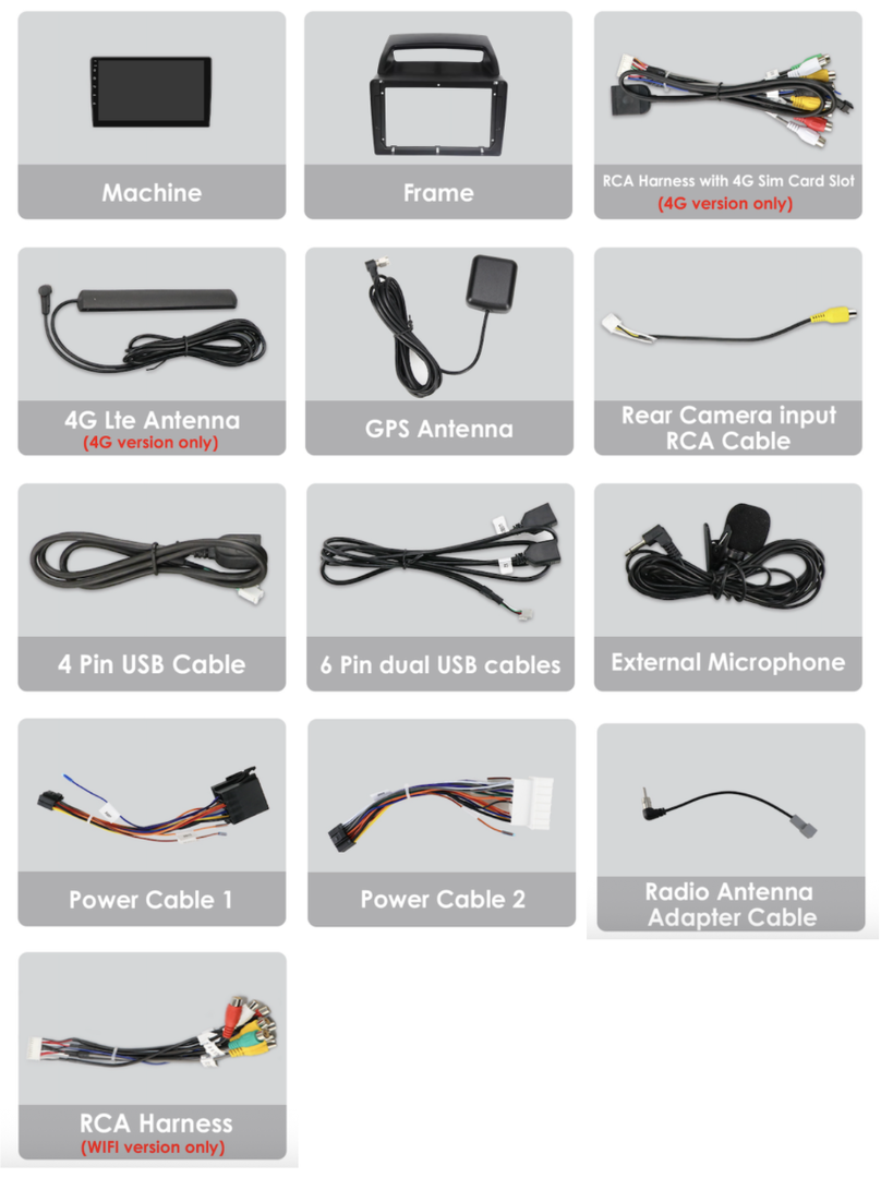 - Kabel pro připojení parkovací kamery,