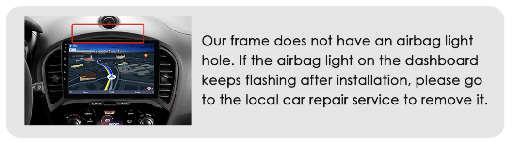 - Rámeček pro autorádio nedisponuje otvorem pro kontrolku airbagů, je nutné původní kontrolku vyjmout a umístit za nové autorádio nebo diagnosticky chybu odstranit.