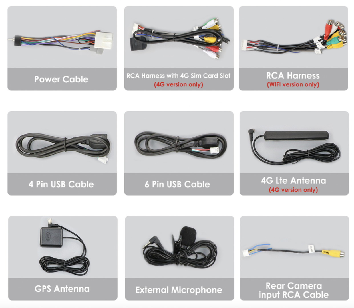 - Kabel pro připojení parkovací kamery,