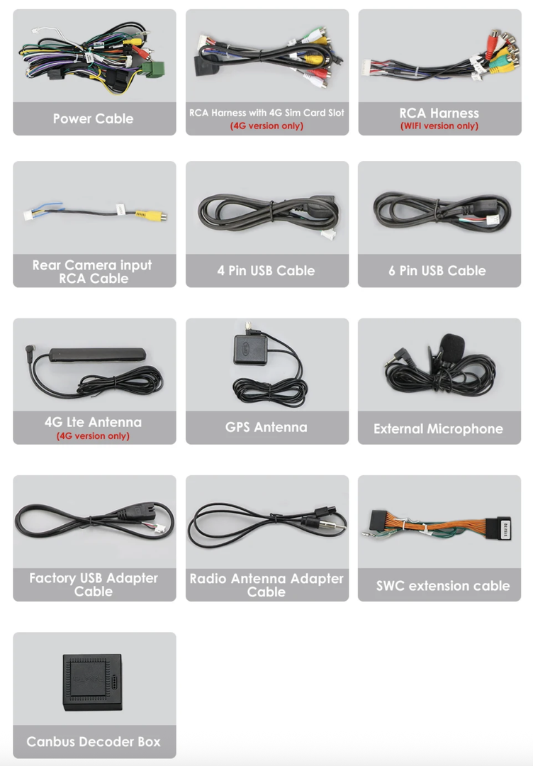 - Napájecí kabel včetně CANbusu,