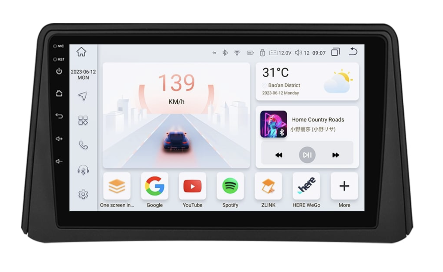 Velká 9" QLED dotyková obrazovka