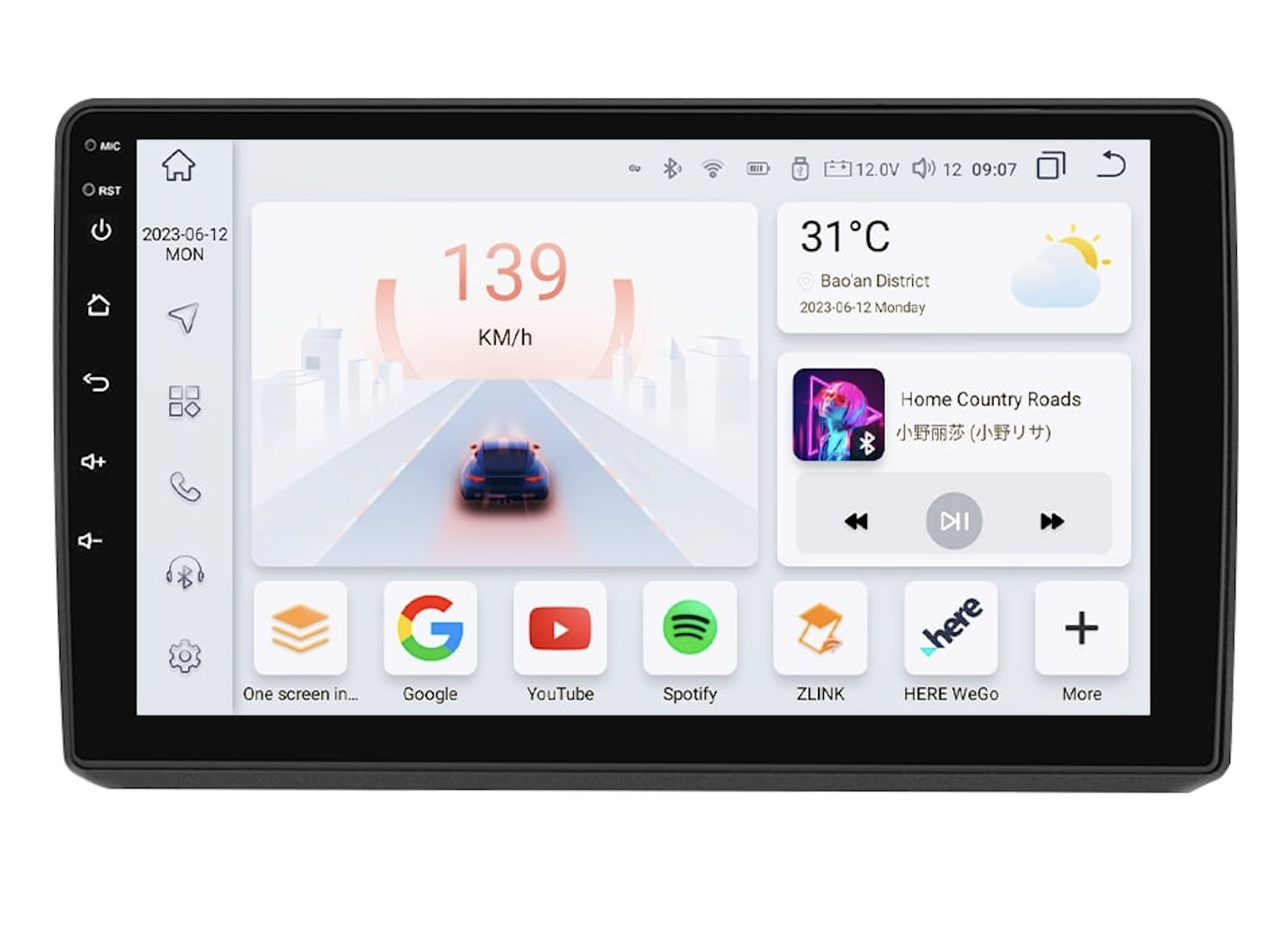Velká 9" QLED dotyková obrazovka