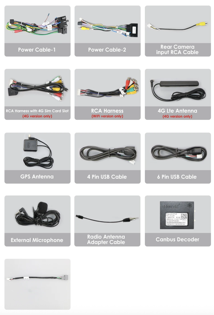 - Napájecí kabel včetně CANbusu,