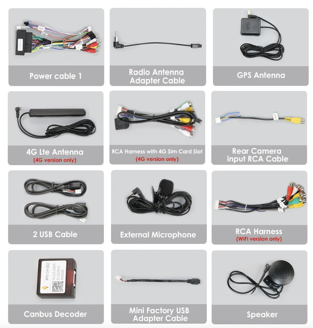 - Kabel pro připojení parkovací kamery,
