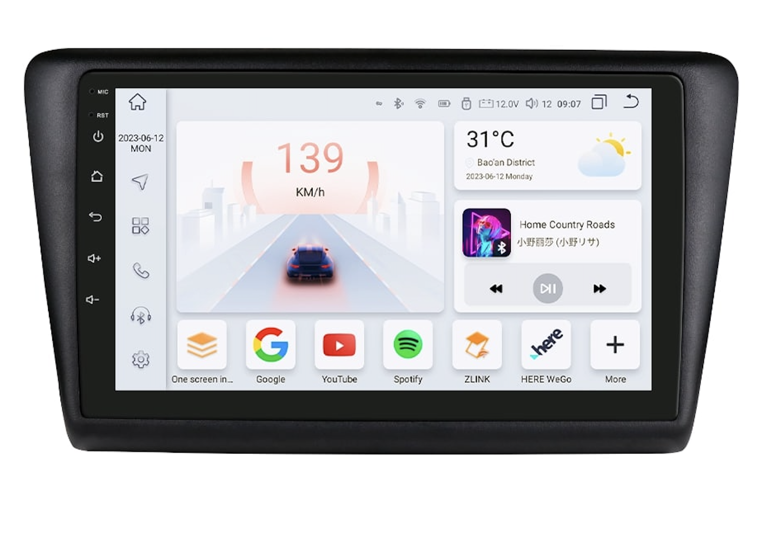 Velká 9" QLED dotyková obrazovka