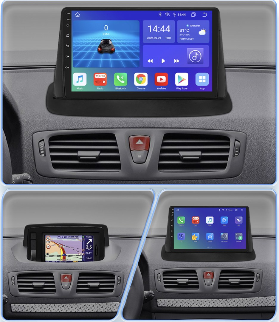 HIZPO KXRNMGN92CB Autorádio 9" Android 13 pre Renault Megane 3 Model: S9008 (8+128GB) CHR2331