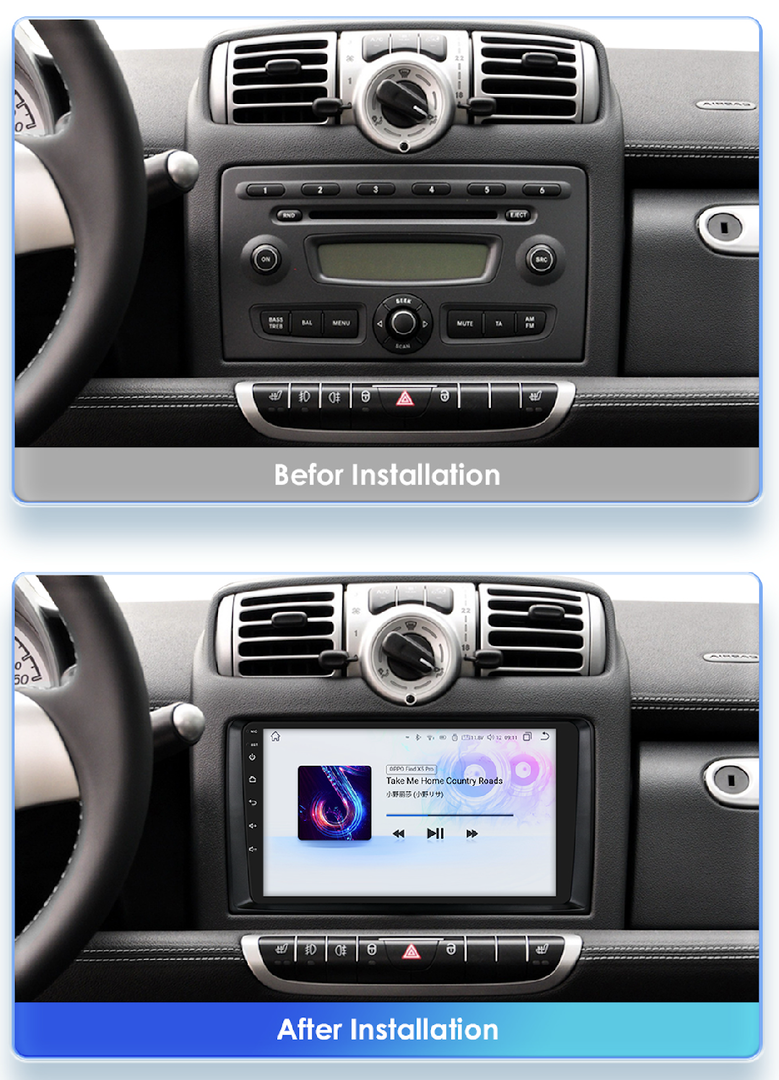HIZPO KXSMFT91 Autorádio 9" Android pro Smart Fortwo 451 (2010-2015) Model: S9004 (4+32GB) CHR4601_S92