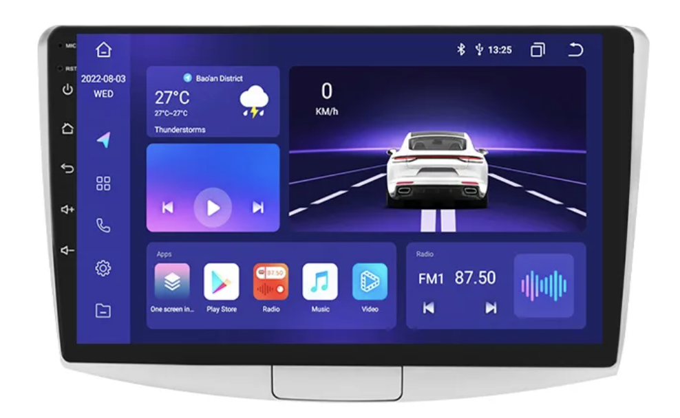Rychlý systém Android 13 nabízí bezdrátové zrcadlení pro snadné propojení s Android i iPhone. Díky Apple CarPlay a Android Auto máte rychlý přístup k funkcím telefonu. Bluetooth umožňuje příjem hovorů a přehrávání hudby přímo z telefonu. Rádio lze připojit k Wi-Fi nebo vložit SIM kartu (pouze u některých výkonnostních verzí) pro připojení k internetu. Integrovaná navigace IGO Primo funguje bez internetu a rádio podporuje tlačítka na volantu i parkovací senzory. K dispozici je také možnost připojení parkovací kamery (CINCH). Rádio se automaticky vypne po vytažení klíče, aby nevybíjelo baterii.