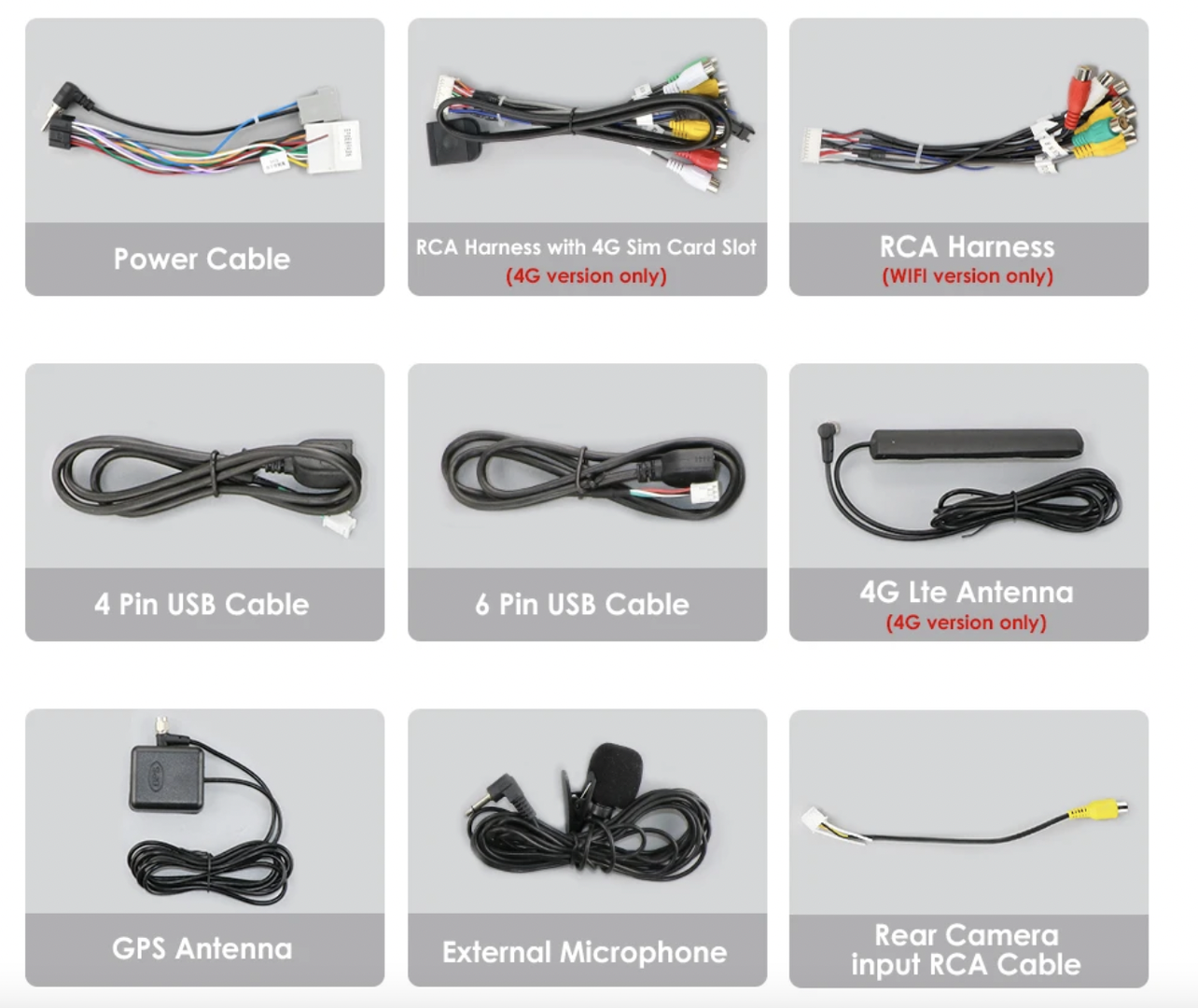 - Kabel pro připojení parkovací kamery,