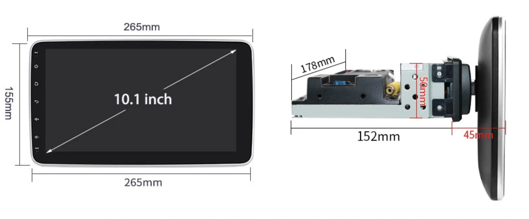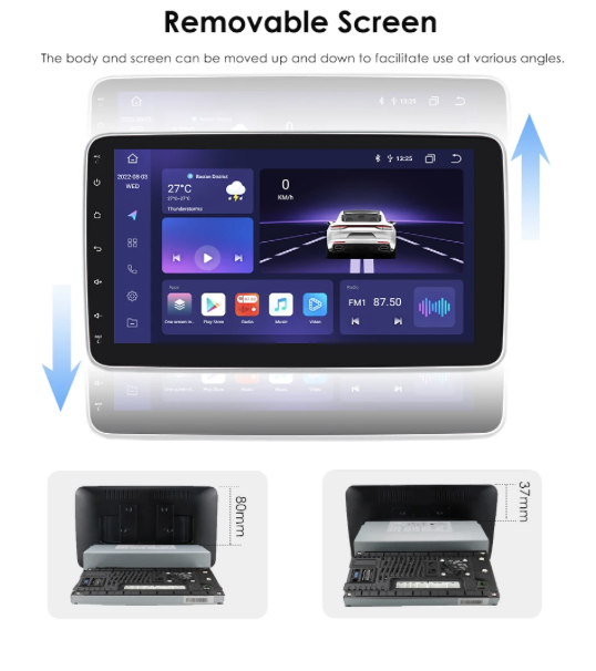 Stylové 10,1" Android autorádio s 1DIN rozměrem a dotykovým displejem přináší systém Android 13, otočný 360° displej s vertikálním posuvem a podsvícený boční panel. Nabízí Wi-Fi, Bluetooth, GPS,  i integrovanou navigaci iGO Primo. Vybrané varianty podporují také 4G/LTE připojení díky slotu na SIM kartu. Bezdrátové Apple CarPlay a AndroidAuto zajišťují pohodlné ovládání telefonu přímo z displeje autorádia, stejně jako bezdrátové zrcadlení obrazovky. Barevně podsvícený boční panel dodává zařízení moderní vzhled. Autorádio umožňuje připojení parkovací kamery s CINCH konektorem a podporuje formáty NSTC, PAL, CVBS, AHD720p a AHD1080p. K dispozici je také možnost připojení DVR přední kamery pro nahrávání jízdy. Ideální volba pro bezpečnost a zábavu na cestách.