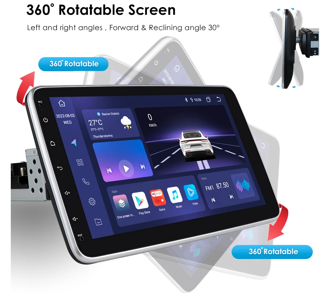 HIZPO YT003P Univerzální 1DIN Autorádio 10,1" s otočným displejem Model: 4SYT003P (4+32GB) CHR898