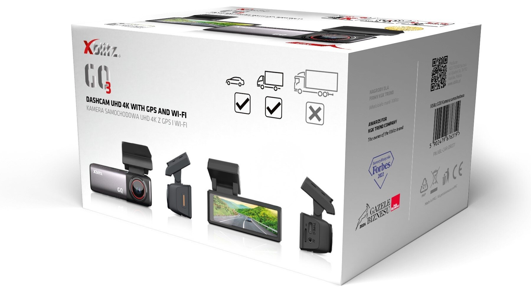 Kamera do auta Xblitz GO3 zachycuje dění před vozem v neuvěřitelně ostrém a detailním rozlišení 4K (3840 × 2160 pixelů). Takto vysoké rozlišení je klíčové – usnadňuje identifikaci klíčových prvků, jako jsou registrační značky vozidel a dopravní objekty, což je nezbytné pro přesné záznamy při vyšetřování dopravních nehod.