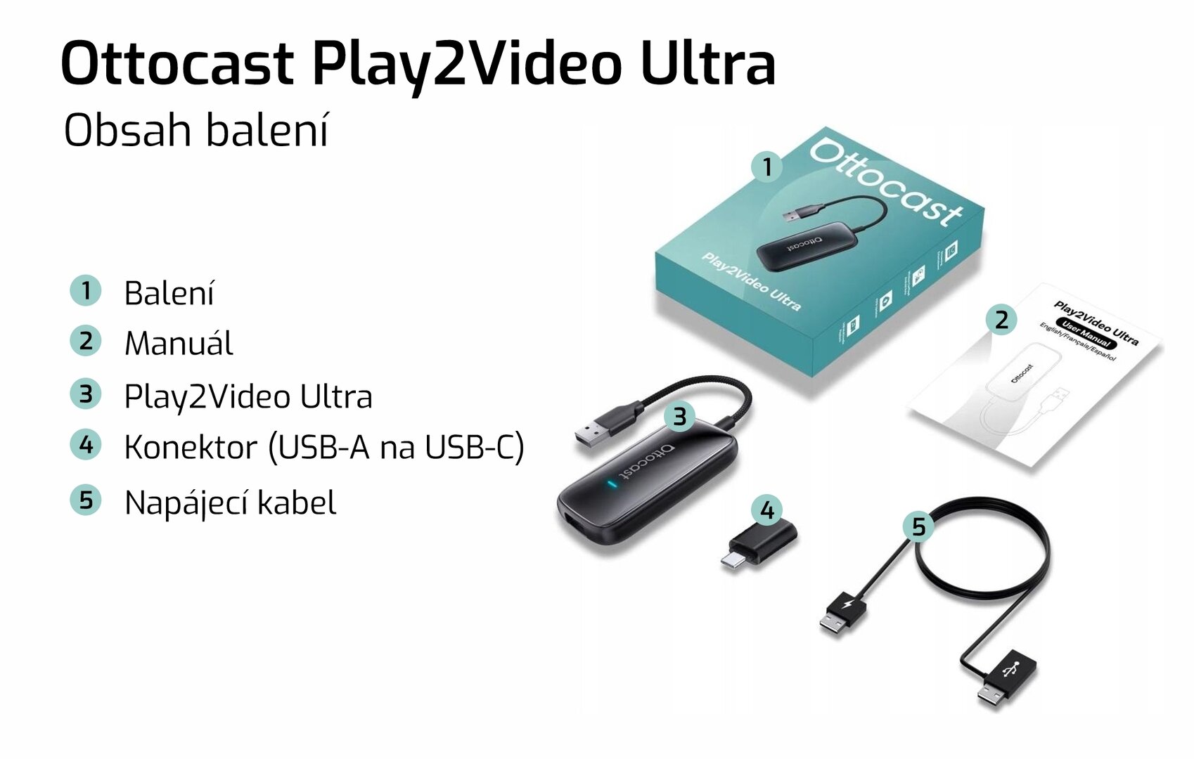 Ottocast Play2Video Ultra - Multimediální adaptér - bezdrátový CarPlay / Android Auto 4008
