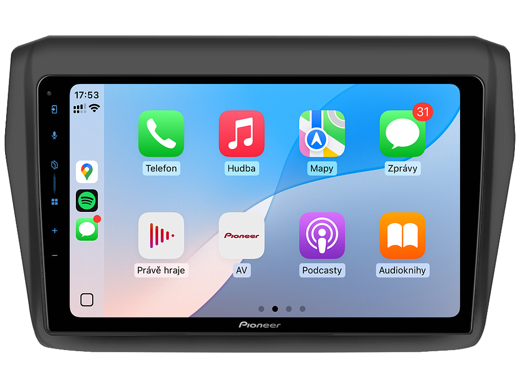 Proměňte každou jízdu automobilem v jedinečný zážitek s autorádiem Pioneer SPH-PF97BT pro Suzuki Swift III (Gen 5). Tento moderní multimediální systém se pyšní velkým 9" dotykovým displejem s intuitivním ovládáním, které vám poskytne snadný přístup ke všem funkcím. Apple CarPlay a Android Auto zajišťují bezproblémové propojení s vaším chytrým telefonem, takže můžete pohodlně používat navigaci, přehrávat hudbu nebo vyřizovat hovory prostřednictvím Bluetooth Handsfree. Díky pokročilému DSP (Digital Signal Processor) ekvalizéru si užijete dokonalý zvukový zážitek, ať už posloucháte oblíbenou hudbu nebo sledujete video. Bezdrátové připojení umožňuje rychlé streamování a přístup k online službám. Pokud často parkujete ve stísněných prostorech, oceníte možnost připojení couvací kamery, která vám usnadní manévrování. Elegantní design a široká kompatibilita dělají z Pioneer ideální volbu pro každého, kdo hledá špičkové autorádio s nejmodernějšími technologiemi.