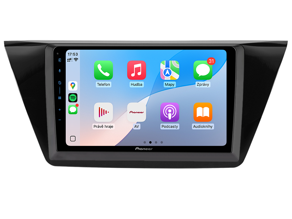 Proměňte každou jízdu automobilem v jedinečný zážitek s autorádiem Pioneer SPH-PF97BT pro Volkswagen Touran II. Tento moderní multimediální systém se pyšní velkým 9" dotykovým displejem s intuitivním ovládáním, které vám poskytne snadný přístup ke všem funkcím. Apple CarPlay a Android Auto zajišťují bezproblémové propojení s vaším chytrým telefonem, takže můžete pohodlně používat navigaci, přehrávat hudbu nebo vyřizovat hovory prostřednictvím Bluetooth Handsfree. Díky pokročilému DSP (Digital Signal Processor) ekvalizéru si užijete dokonalý zvukový zážitek, ať už posloucháte oblíbenou hudbu nebo sledujete video. Bezdrátové připojení umožňuje rychlé streamování a přístup k online službám. Pokud často parkujete ve stísněných prostorech, oceníte možnost připojení couvací kamery, která vám usnadní manévrování. Elegantní design a široká kompatibilita dělají z Pioneer ideální volbu pro každého, kdo hledá špičkové autorádio s nejmodernějšími technologiemi.