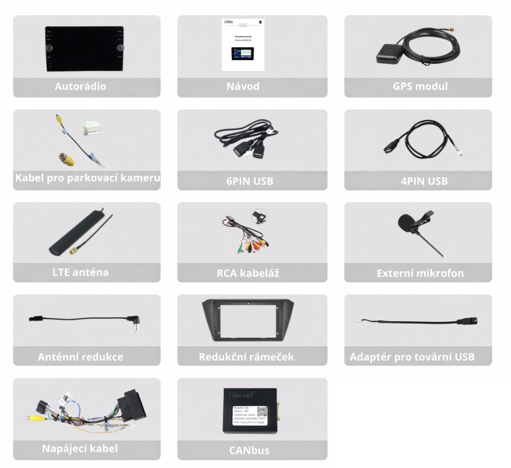 Součástí balení je CANbus dekodér, který po správném nastavení modelu vozidla v nabídce Factory Settings umožňuje autorádiu plnohodnotně komunikovat s řídicí jednotkou automobilu. Díky tomu jsou automaticky rozpoznány a funkční tlačítka na volantu, parkovací senzory i další systémová nastavení vozidla. CANbus zajišťuje plynulou integraci mezi autorádiem a elektronikou vozu, takže všechny originální funkce zůstávají zachovány a rozšiřují se o nové možnosti ovládání a zobrazení informací.