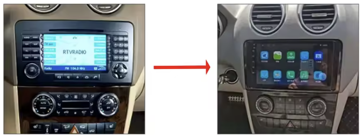 Redukční rámeček vhodný pro instalaci 9" autorádia 2DIN do vozidel Mercedes-Benz ML W164 a GL X164.