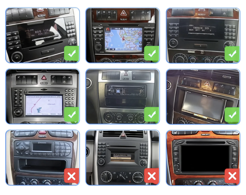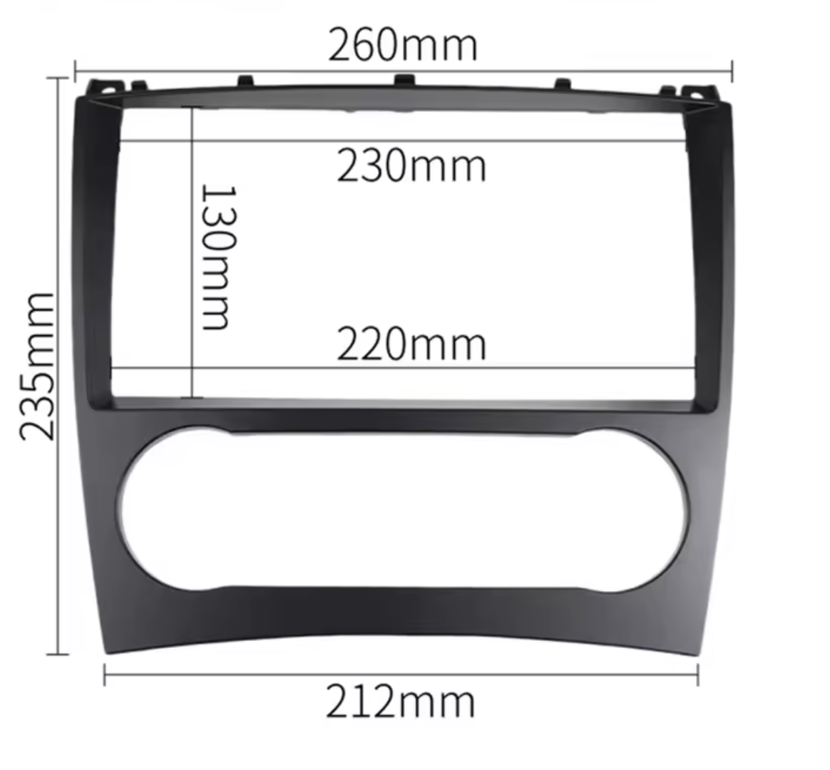 Redukční rámeček vhodný pro instalaci 9" autorádia 2DIN do vozidel Mercedes-Benz C W203, CLC W203 a CLK W209.