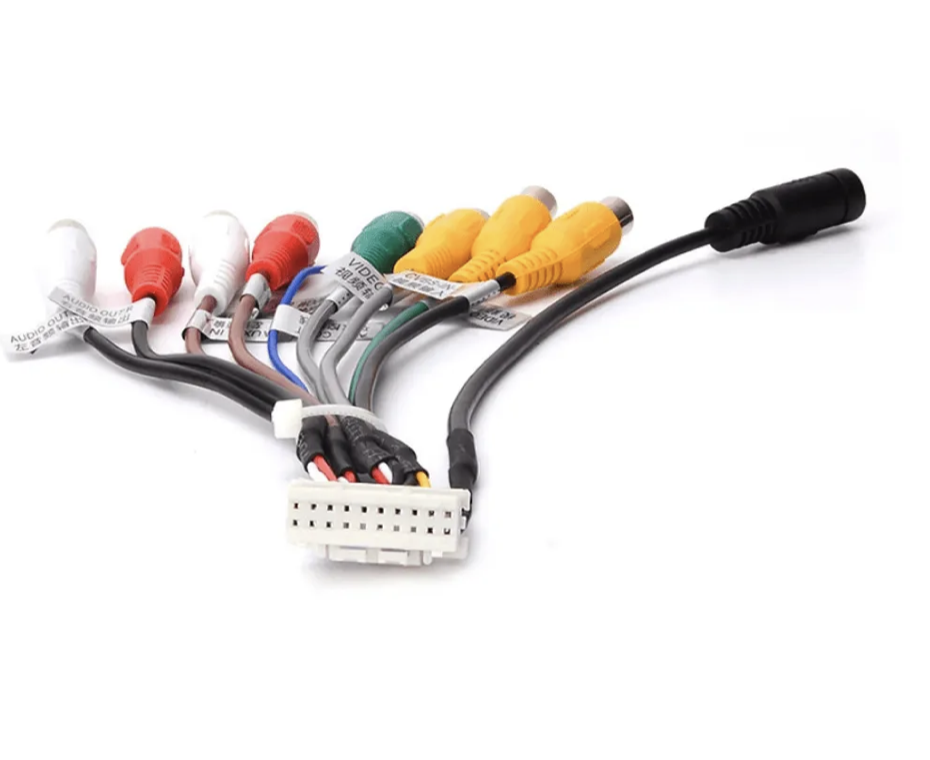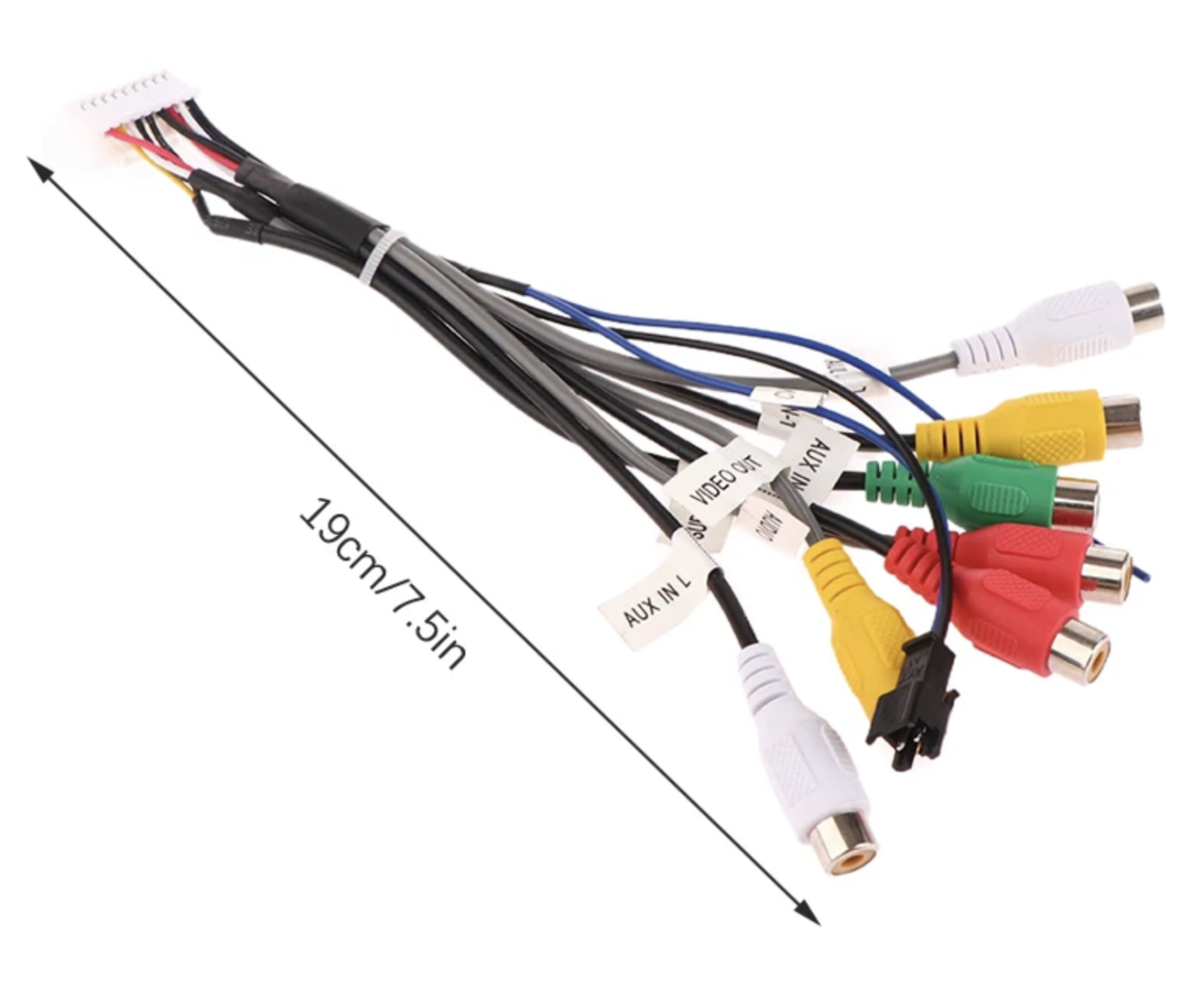 RCA kabeláž sloužící pro připojení subwooferu, externích monitorů, napájení zesilovače antény a externího mikrofonu u všech typů Android autorádií.