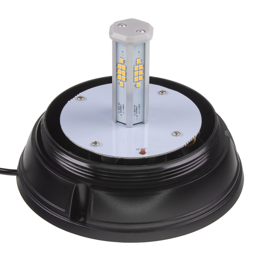 Výstražný oranžový maják s LED technologií a s možností zábleskového nebo otočného provozu. Určen pro pevnou montáž!   Technické parametry: • homologace dle: ECE R65, R10 • světelný zdroj: 48x LED 1 W • 7 režimů výstražného blikání včetne otočného režimu • možnost synchronizace s dalšímy majáky stejného typu • pevná montáž • napájecí napětí: 12 V - 24 V • proudový odběr: 1,14 A / 12 V - 0,57 A / 24 V • pracovní teplota: od - 30 ºC do + 60 ºC • rozměry: ø základny 171 mm, ø krytu 130 mm, výška 14…