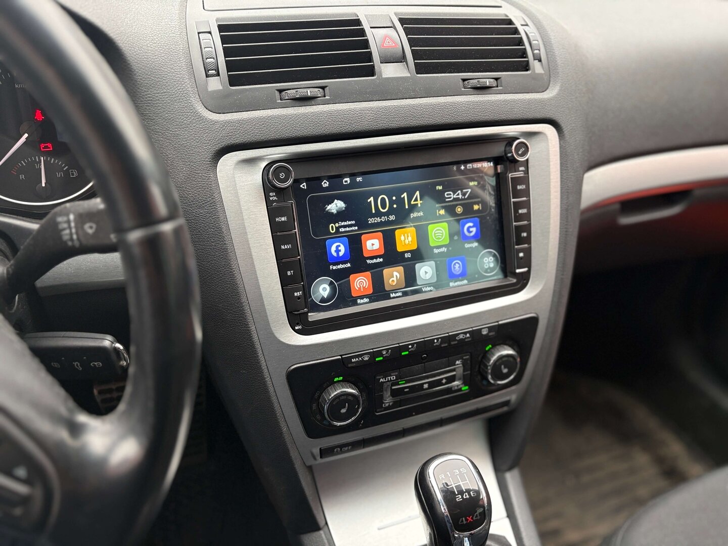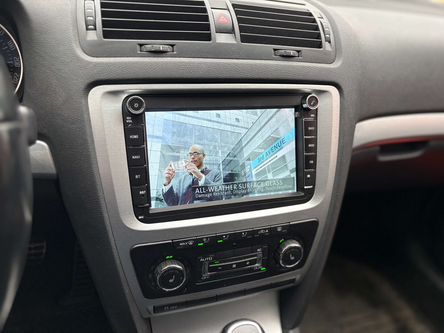 Takto vypadá po instalaci jedno z nejoblíbenějších autorádií pro Škodu Octavii a další koncernová auta. Rádio má vše potřebné a hlavně je vybaveno špičkovým tunerem, takže příjem rádia je zde bez problémů. Aby rádio mělo z antény kvalitní signál, bylo potřeba dodat anténní napaječ. Zároveň jsme zákazníkovi doporučili dokoupit externí mikrofon, protože zvuk z něj je o poznání lepší, než zvuk ze zabudovaného mikrofonu.
