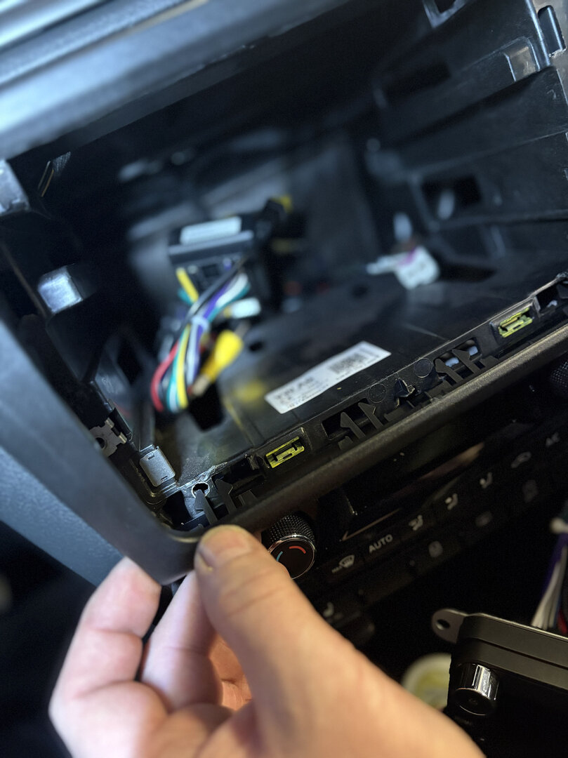 Ne vždy však plastové redukční rámečky pasují naprosto bez problému. A to byl i případ tohoto auta. Aby do něj rámeček šel zapasovat, bylo potřeba provést menší úpravy na původních plastech v autě. Více ve fotogalerii, včetně popisků.
