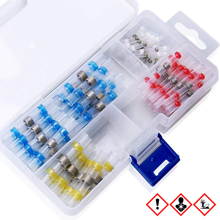 Sada vodotěsných smršťovacích spojek s cínem. Určeno pro vodotěsné spojení vodičů bez nutnosti pájení.