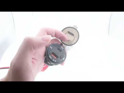 USB nabíječka QC3.0 + USB-C, s voltmetrem s krytkou proti prachu a vlhkosti, červené podsvícení.
